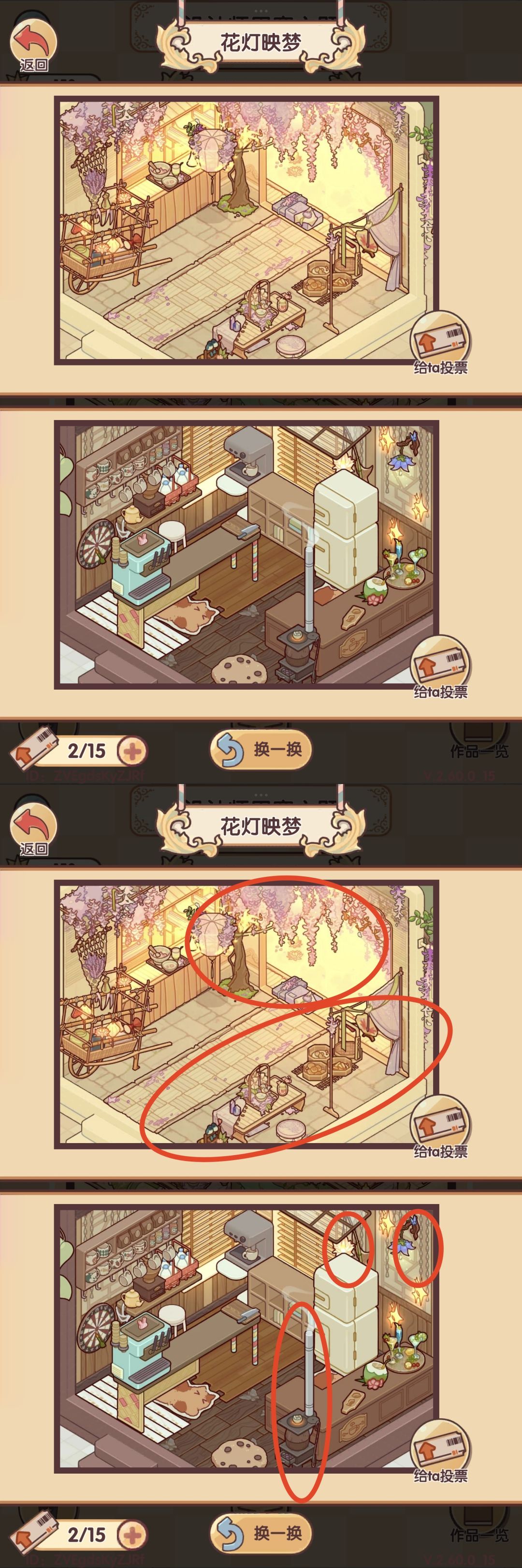 第三个对比:两个虽都含有花灯元素,但是B图更胜出一筹。A图的场景非常的简洁,作者也有细心的设置一下靠边的位置,放一些糕点、点心,但是这个场景过于大白,场景非常明亮,像是集市的小摊儿,而B图通过调节了光影,只留下几盏花灯给整个图增添了一种祥和宁静的氛围