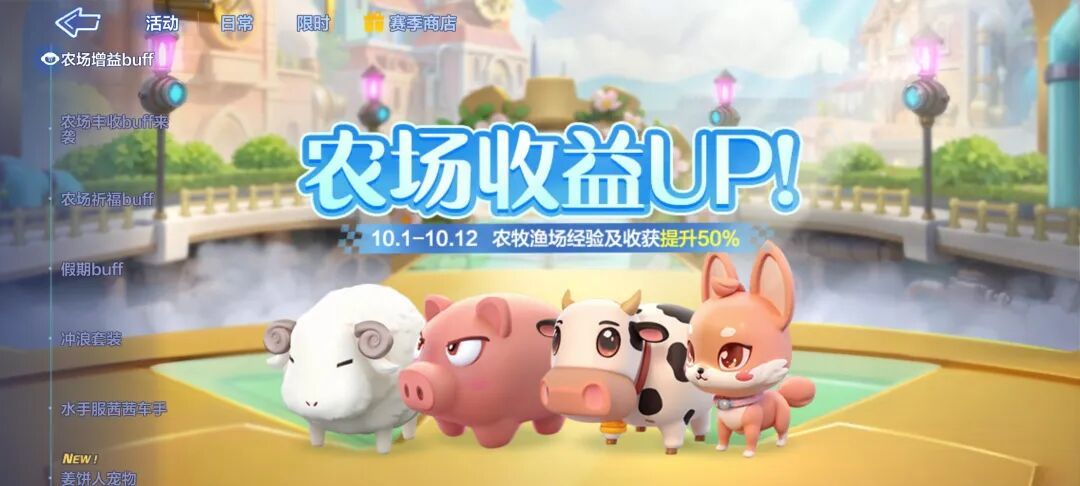鱼塘中的鱼儿肥美遨游,农田里蔬果鲜美,动物乐园欣欣向荣,餐厅营业蒸蒸日上,真是丰收的金秋啊~10月1日起,4个宝宝农场BUFF活动上线,包含农牧渔经验收获提升,餐厅经验提升、祈福次数提升、餐厅员工招聘刷新高品质员工概率提升,真正的丰收即将到来,尽情收获吧!