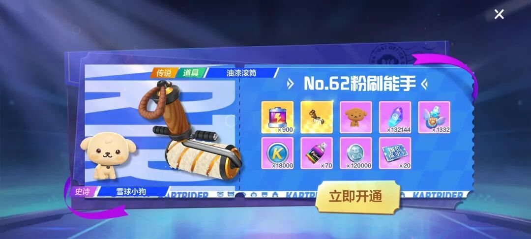 小狗跳上高墙,油漆沾上彩虹,为绚烂美好的金秋十月肆意涂抹色彩!No.62期通行证粉刷能手开启,10月1日-10月31日,参与完成每周任务即可解锁全新传说道具车【油漆滚筒】、史诗宠物【雪球小狗】、电池等丰厚奖励,选择季卡更有买二送一超值优惠!