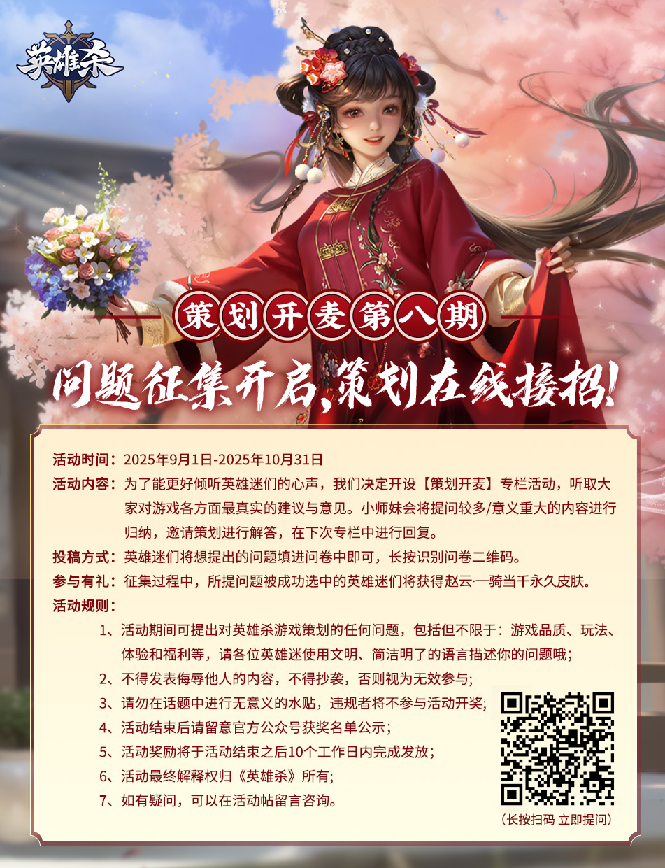 同时,新一期“策划开麦”问题征集活动正在进行中,如果你还有其他疑问或建议,欢迎扫描下方二维码向策划进行提问呦~
