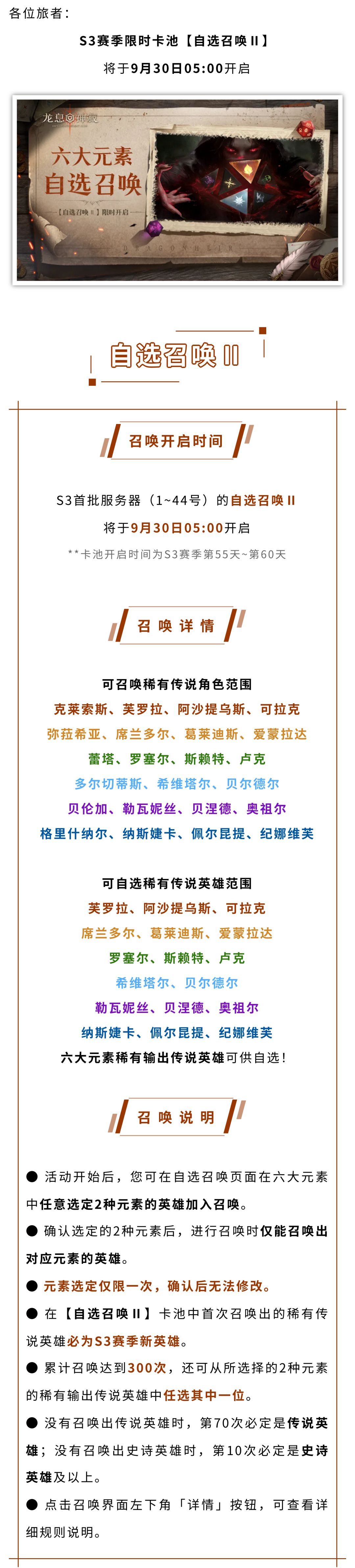 【自选召唤Ⅱ】丨六大元素稀有传说英雄可自选!