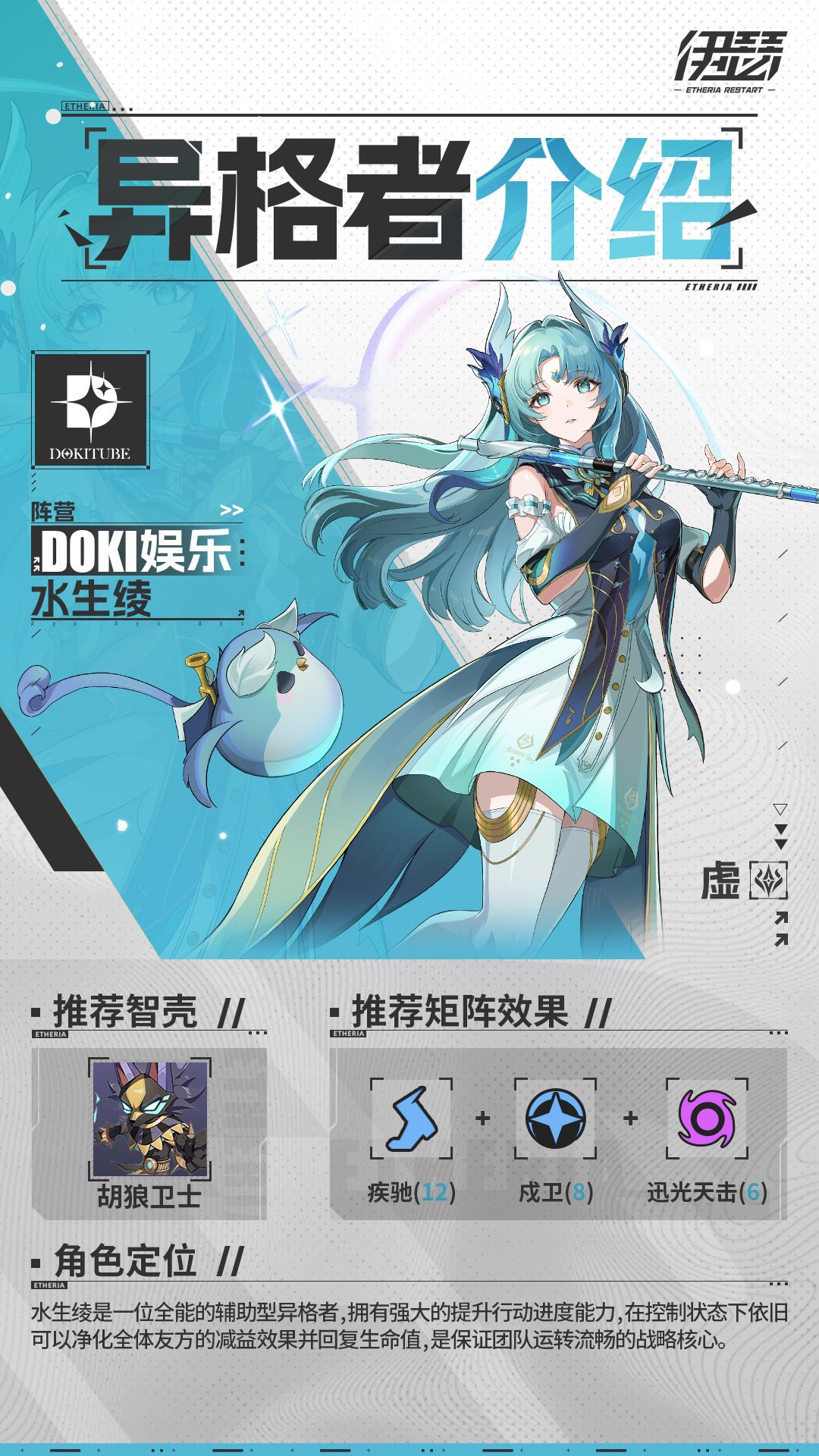 水生绫是一位全能的辅助型异格者,拥有强大的提升行动进度能力,在控制状态下依旧可以净化全体友方的减益效果并回复生命值,是保证团队运转流畅的战略核心。