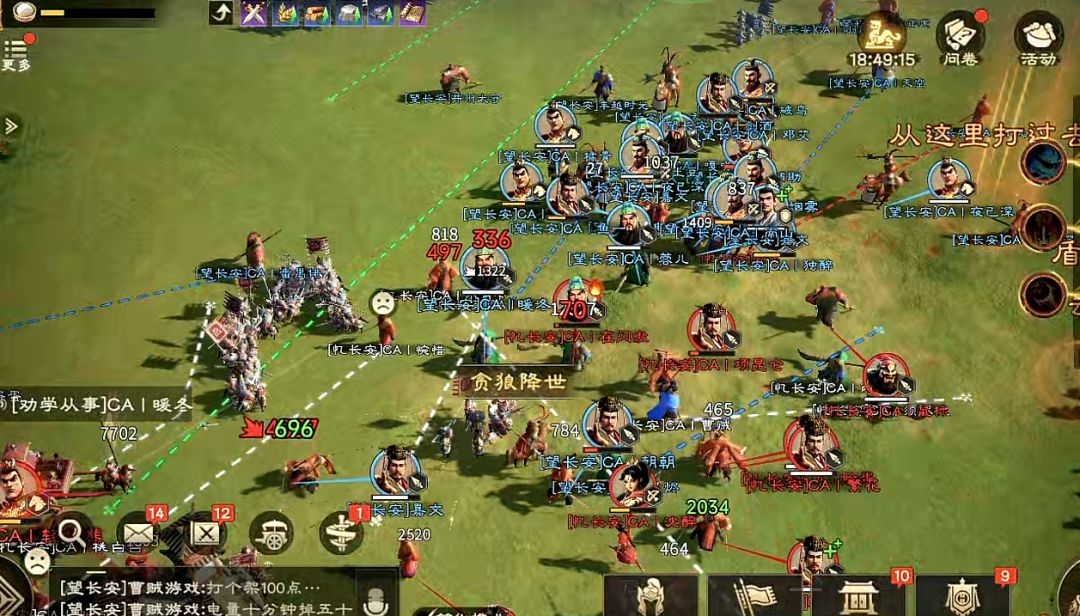 野战时的宏观层面其实就是联盟的角度,相信大家打过野战都会发现,如果你是优势方,那你战功来的很容易,部队经常连胜。如果是劣势方,没打多少战功战意就要被清空了。所以野战对指挥的调度能力、成员的战术执行力是有要求的,当大家一起向前冲锋时,形成的合力远比零零散散各自作战要强得多;而微观层面上,偃武给了一种自己在玩RTS游戏的爽感,这也是我最喜欢的一个点,我可以对自己五队士兵自由调度。