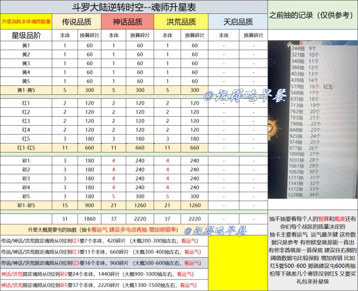 A1:【图3】是我目前汇总了一下 正版官服 目前限时魂师已经出的3个品质升星表和大概需要屯的寒铁范围