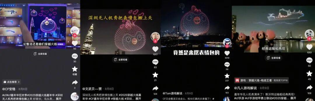 但是让笔者感到意外的是,玩家玩梗就算了,官方竟然也来凑热闹。在8月举办的穿越火线IP嘉年华中,CF正式将玩家喜爱的“鸟头”命名为“CF鹅”(谐音CFer),官方不仅陪大家玩梗,还要把这个梗用无人机送到天上去,于是在8月初的深圳夜空中,“CF鹅”成了天空中最闪耀的存在。