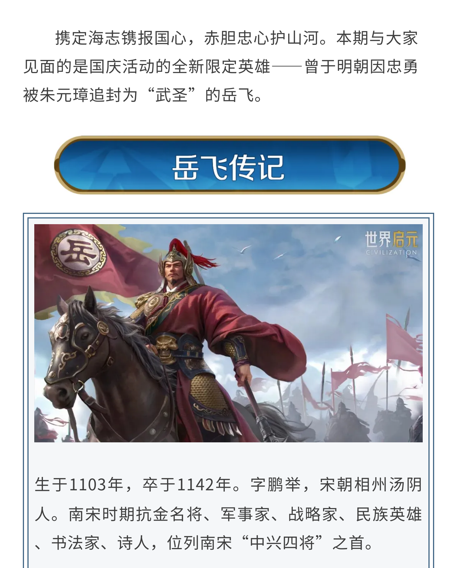 新纪元情报丨新限定英雄:精忠热血铸华魂,「岳飞」详情公布!