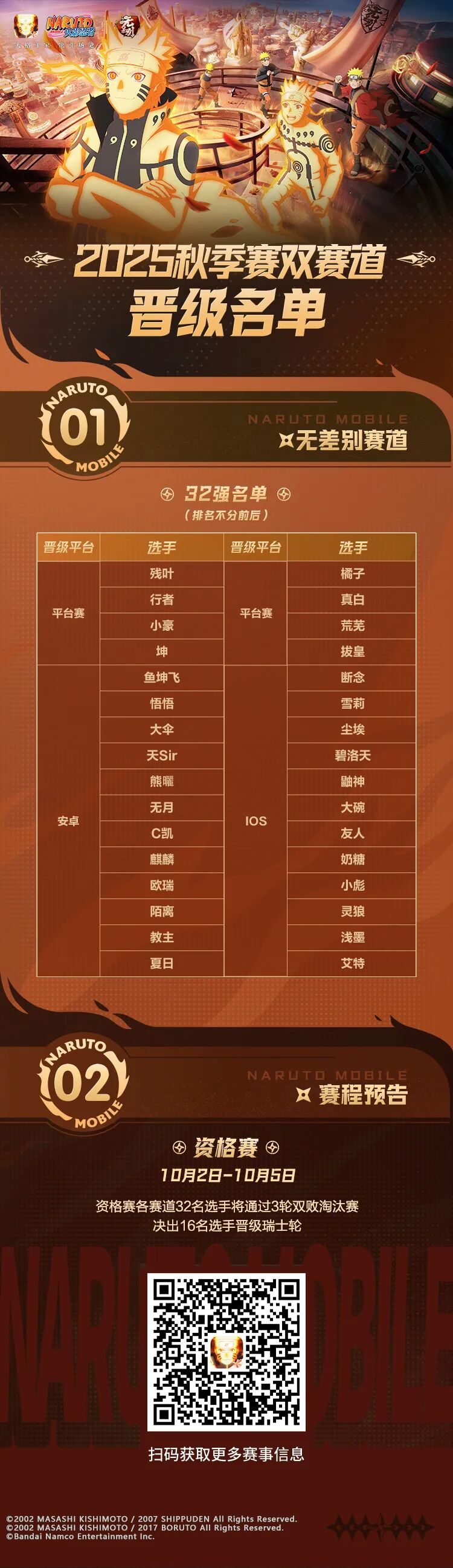 2025《火影忍者》手游秋季赛预选赛落下帷幕,经过一系列激烈对决,双赛道的32强名单正式出炉,快和豚豚一起看看吧!