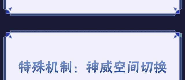 使用一技能第三段划二技能佯攻抓取敌人后,可点击子技能,将默认场景改为神威空间。在神威空间内,组合技、子技能映射的场景相反;且切换空间时,能量条在不同空间的消耗速度也会相反,在神威空间中的消耗速度更慢,在现实世界中的消耗速度更快。