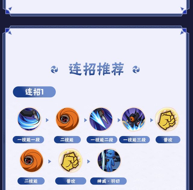 一技能一段划二技能佯攻起手,躲避敌人先手后释放一技能二段、三段反制,将敌人吸入神威空间后按普攻抛出接火球,随后普攻3A,二技能划普攻接一技能将敌人吸入神威空间,释放组合技神威·羽切输出伤害。
