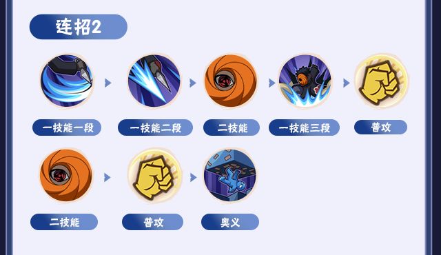 一技能共三段,一段快速突进斩击,可用于起手,二段、三段有抓取效果,第三段落地时可跨y轴位移。
