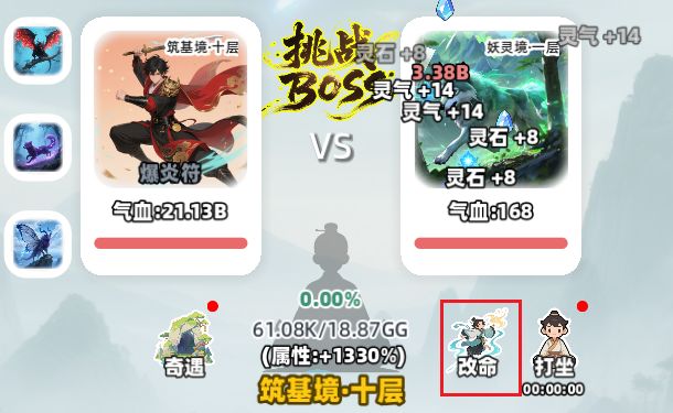 打怪可以获取灵气,灵气的作用就是用来提升境界。