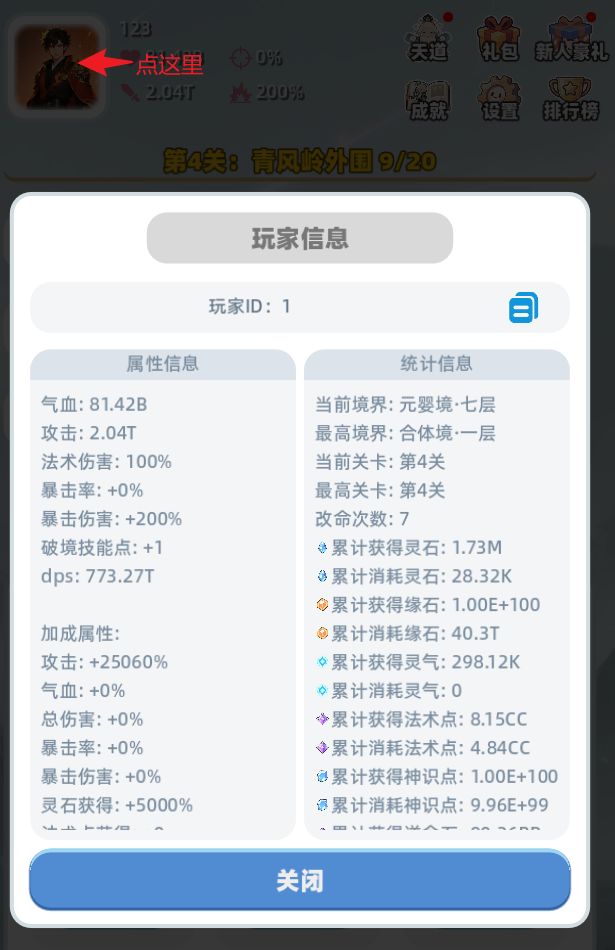 可以点击头像查看属性和统计信息