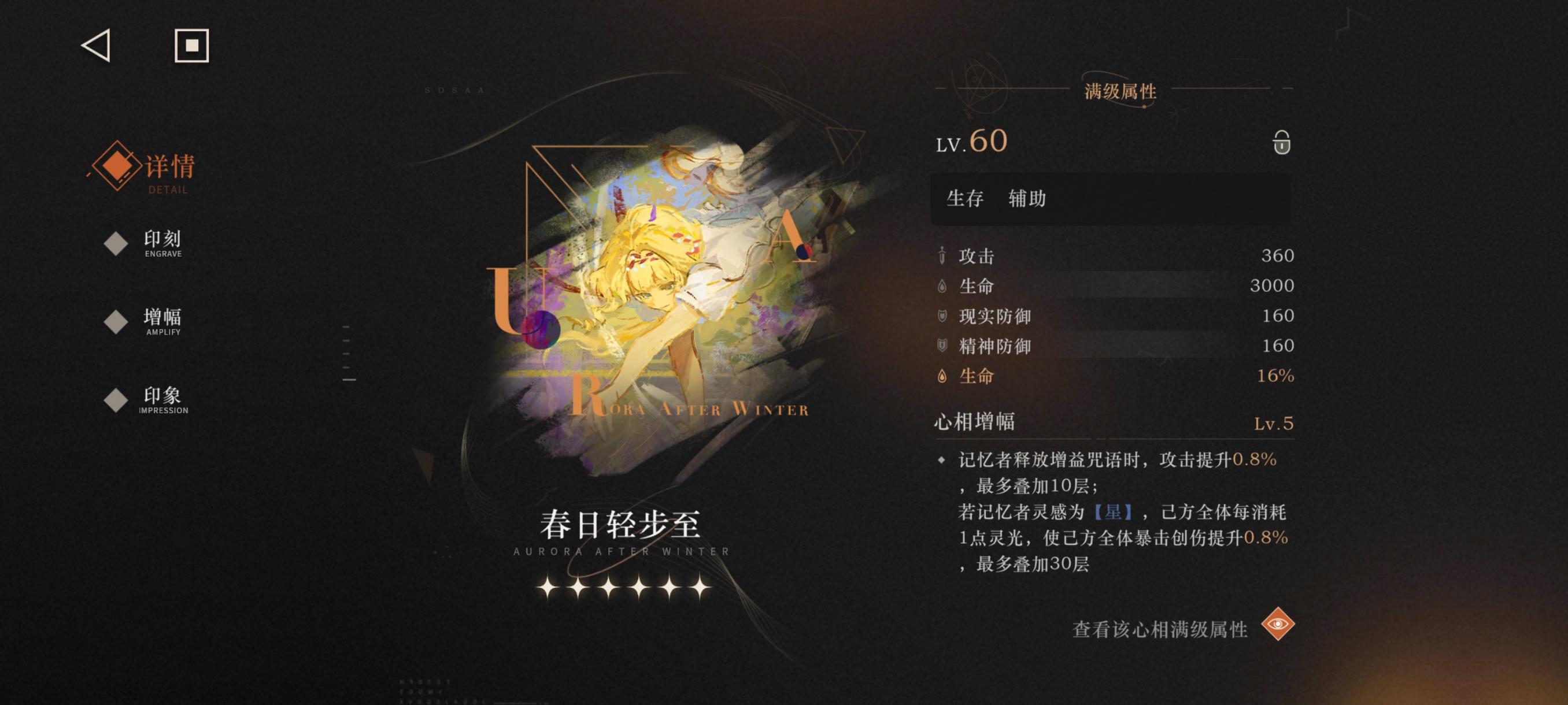 3. 养成关键:心象首选满增幅【春日轻步至】,次选【漫长悄悄话】,共鸣调频选【亢奋】;