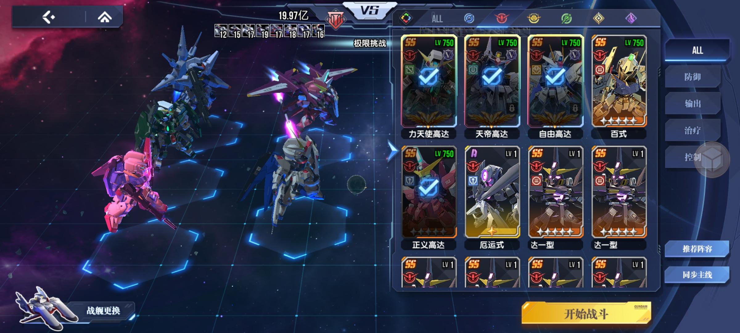 S高达是必不可少的,给我方机体加能量,快速释放必杀技,让必杀技快读回转,并提供易伤状态增加输出。
