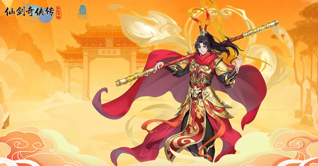 ,金甲披身、红绫飞扬,擎棍凌云气势撼天;