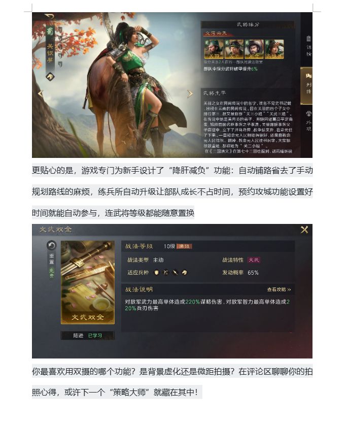 在这款游戏里,每个武将都像手机的“镜头”,有的擅长正面输出(类似主摄),有的精通谋略控场(类似景深镜头),有的专注资源运营(类似微距镜头)。新玩家刚进入游戏,系统就会引导你根据不同战场需求搭配“武将组合”,就像用双摄时选择“主摄+长焦”或“主摄+微距”一样,策略性十足却不难上手。
