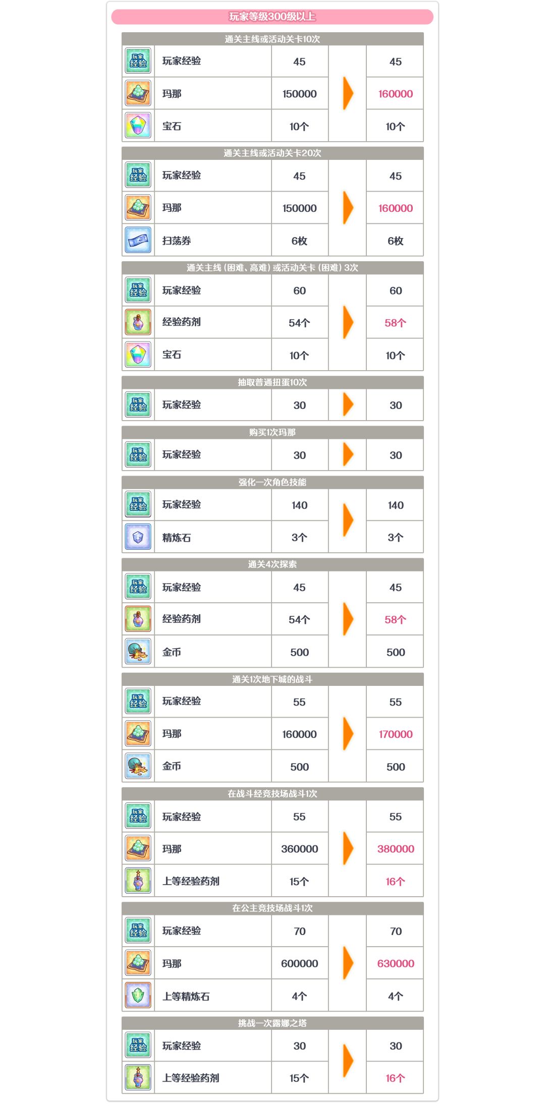 玩家等级300及以上的每日任务获得奖励提高!