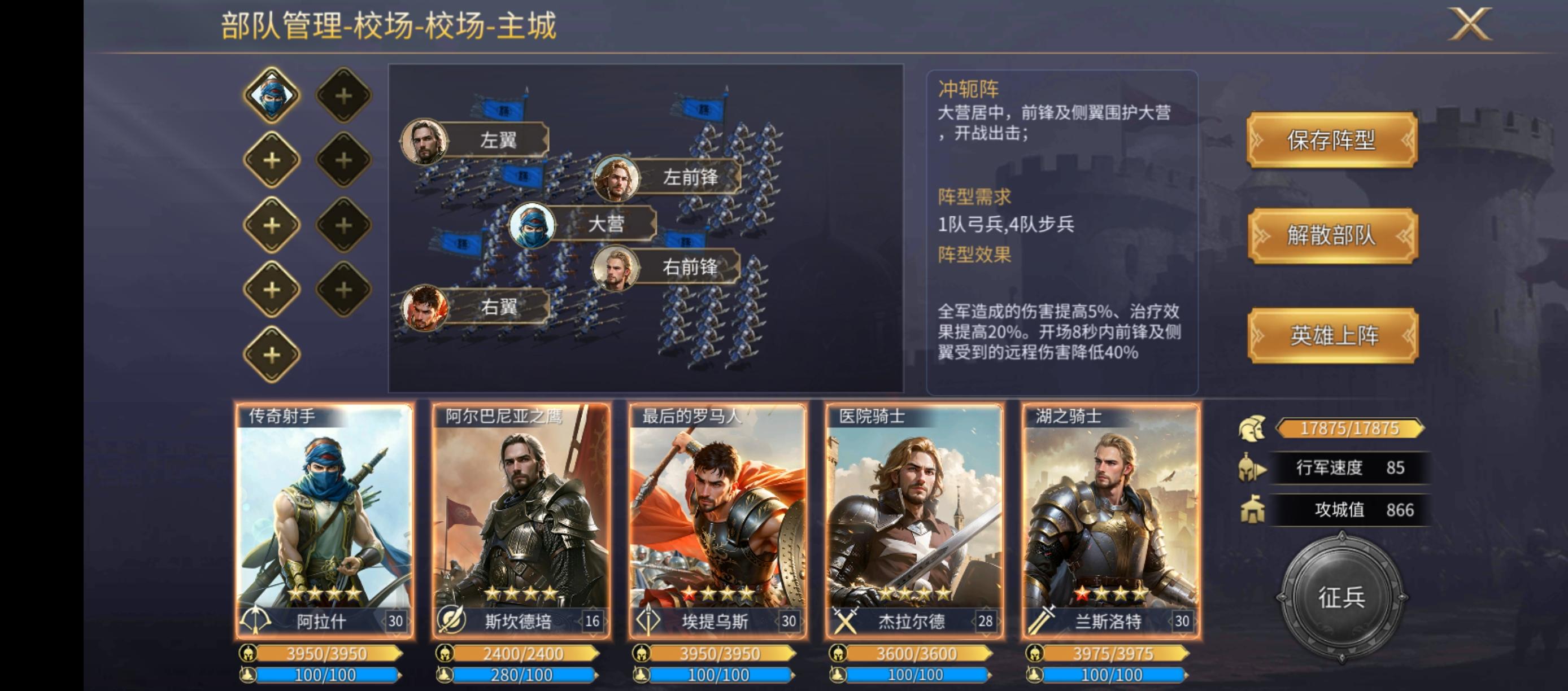 配阵推荐:传奇射手+湖之骑士+医院骑士+阿尔巴尼亚之鹰+最后的罗马人,组冲扼阵;