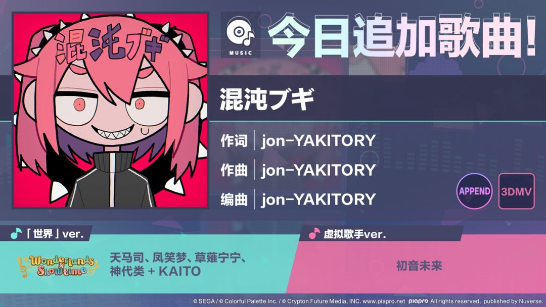 10/2 15:00起,追加歌曲《混沌ブギ》!