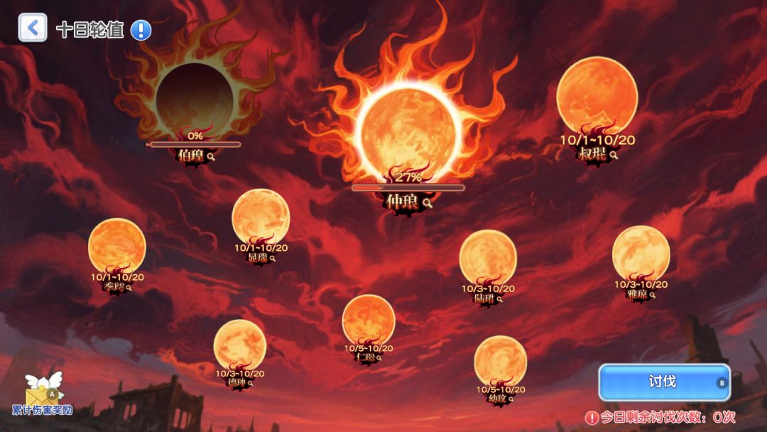 为了避免同一周期指挥官挑战过多太阳的情况,十日分别按照周期开启——