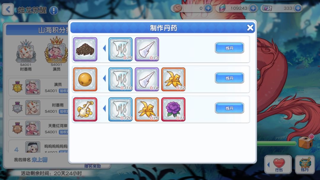 活动内容:指挥官通过炼丹材料合成丹药投喂,唤醒烛龙
