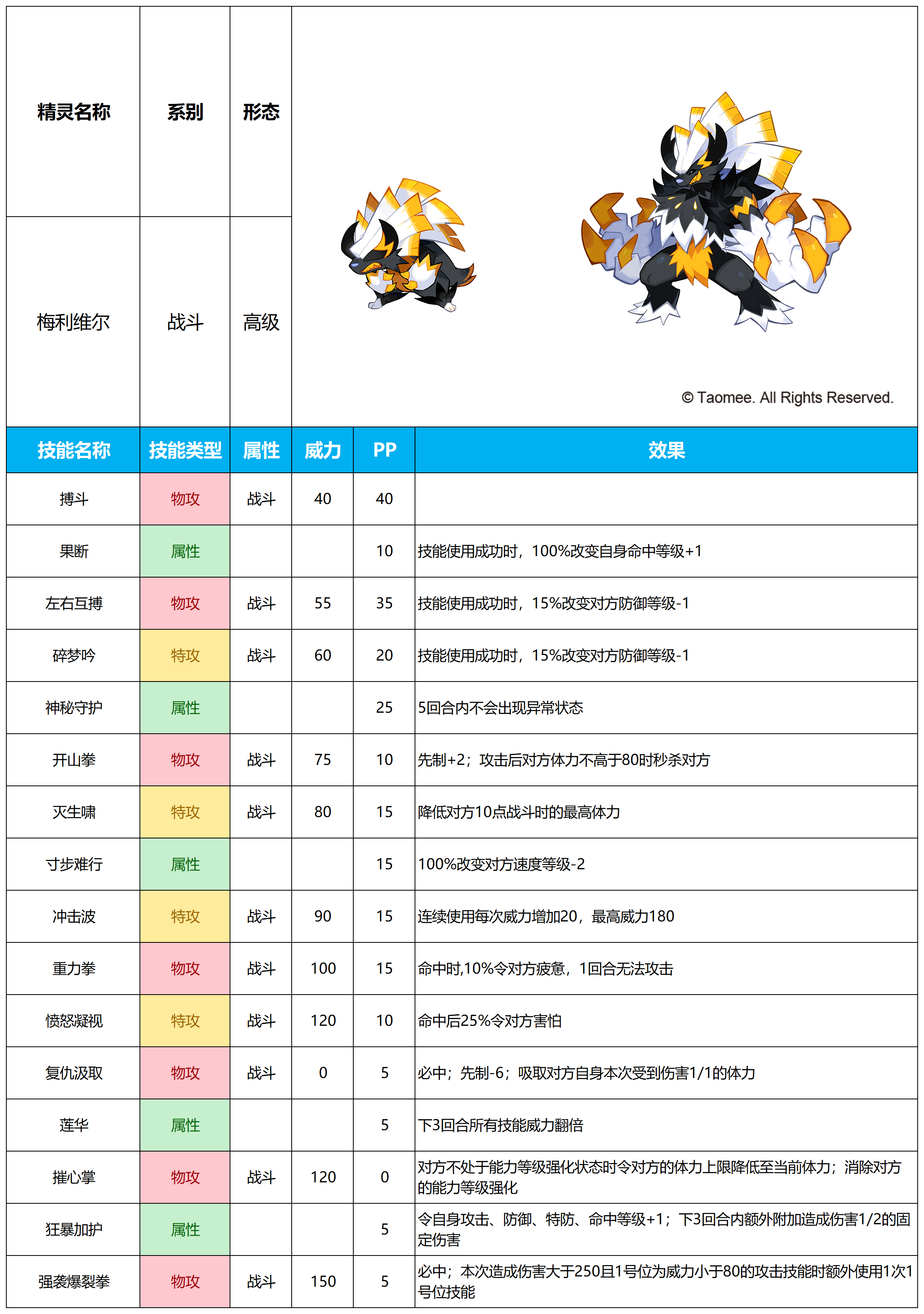 注:精灵的实际内容请以更新后游戏内为准!