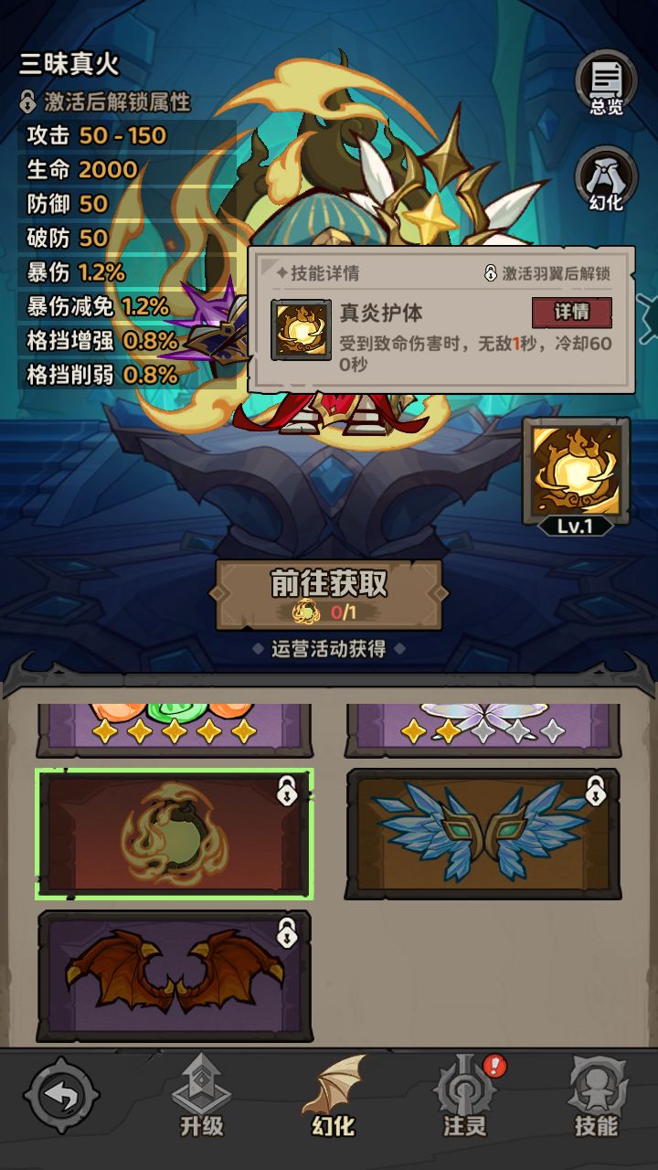 三昧真火:红色品质翅膀,技能是目前三个红翅膀里唯一有些用的。