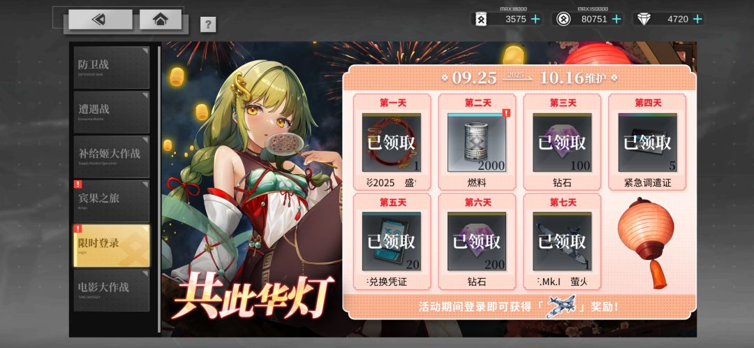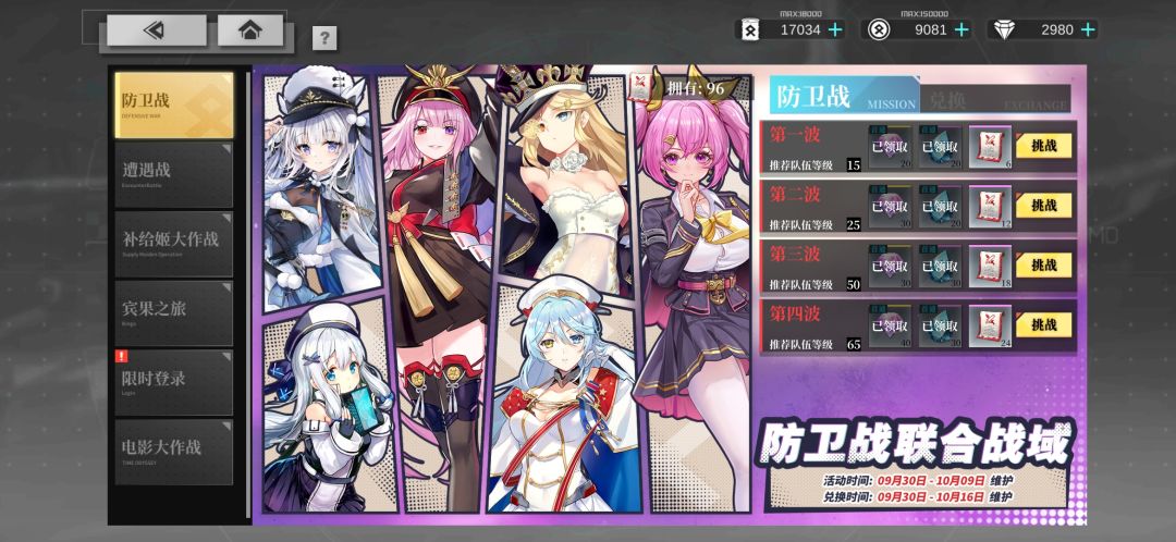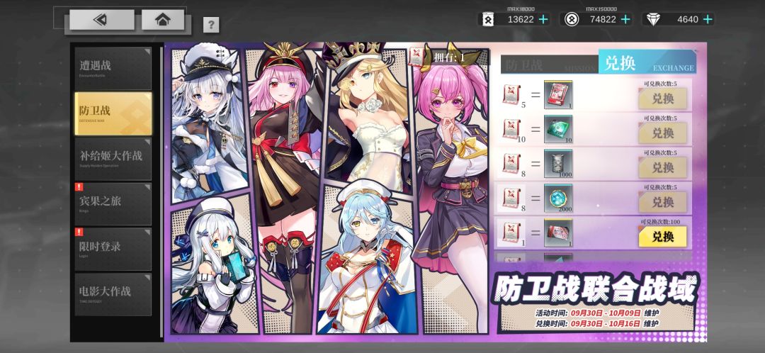 之后今天的油,可以在防卫战和补给姬大作战选一个刷,我选择先刷补给姬。