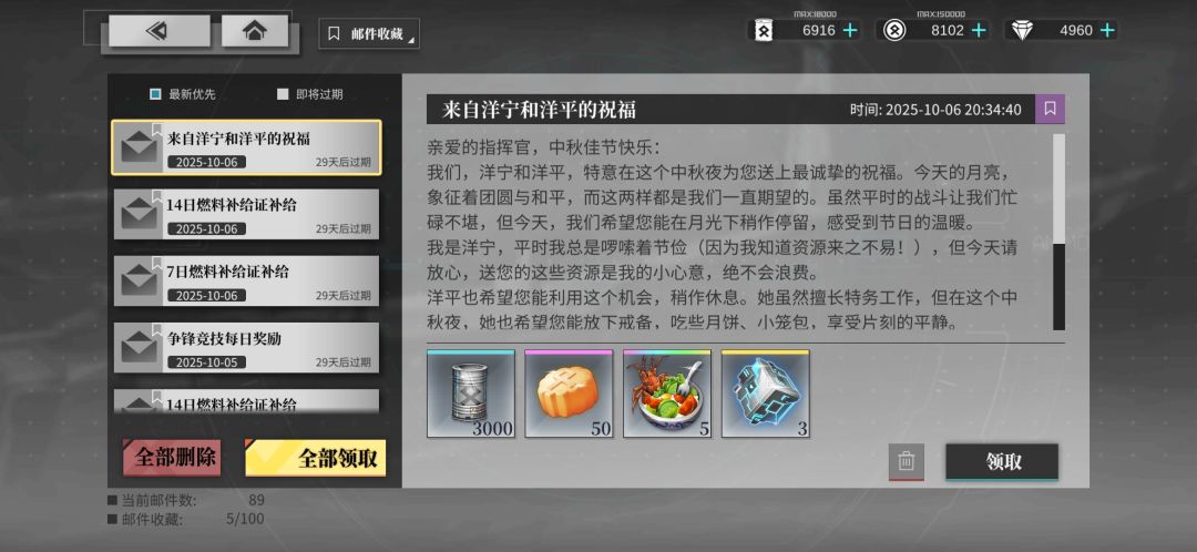 根据9/28的官方直播,确认10月9日 10:00维护后,开启国庆双倍经验。接下来我们可以提前整理一下邮箱里的邮件油。