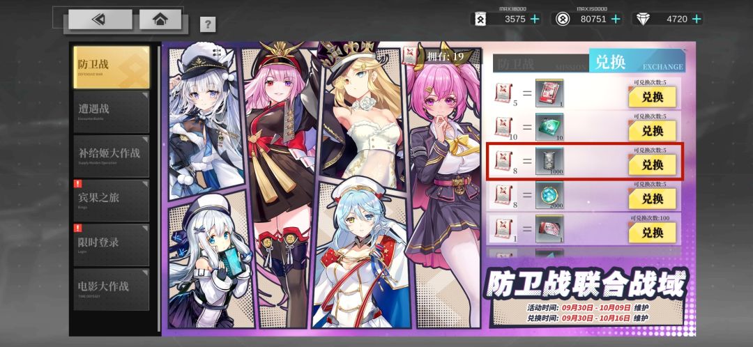 挂完后,把今天点数全部兑换完,计算了下还差255点,防卫战别挂多了,剩下的这些缺口留着做通航证大月卡任务用。