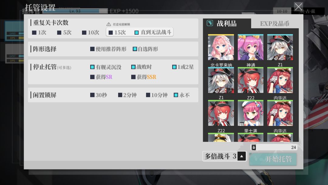 今天1W多油,继续挂主线10-10捞战利品,顺便捞SSR北卡,运气不好没出货。