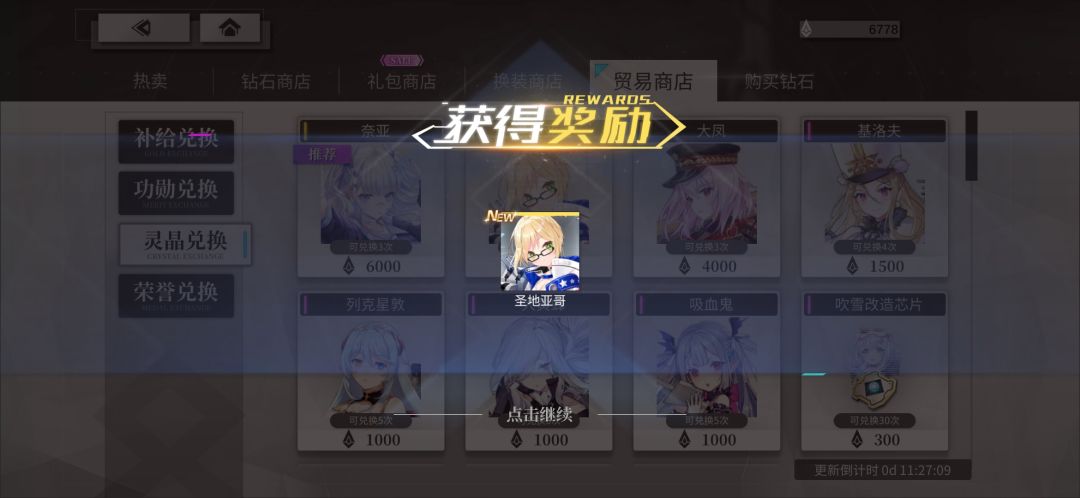 灵晶兑换,先换1个SSR 圣地亚哥开图鉴。