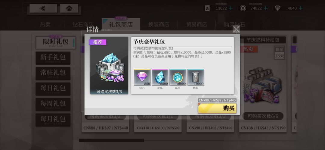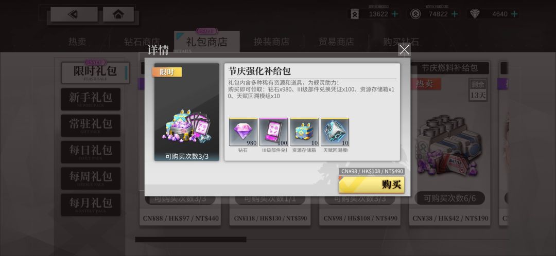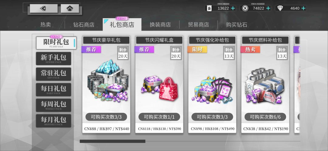 接下来也无事,打开商店看下国庆期间更新上线的节庆限定礼包