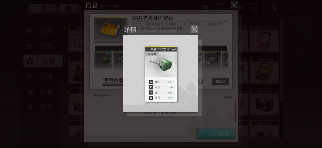SSR型装备库密钥Ⅲ 建议兑换305驱逐炮,目前版本炮驱最强武器。
