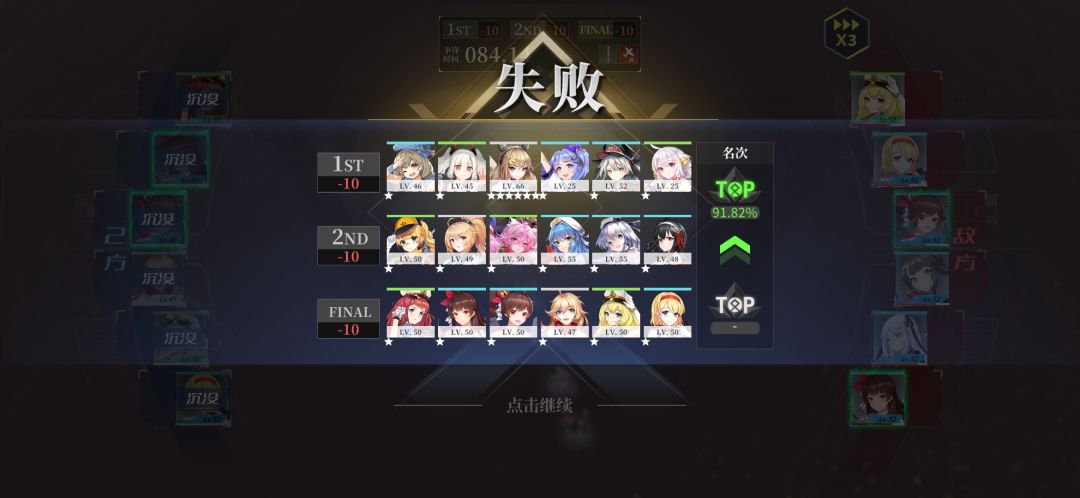 主线13-6 ~ 主线18-10,使用下面的编队配置攻略,大部分自动可过,少数几关需手操下。