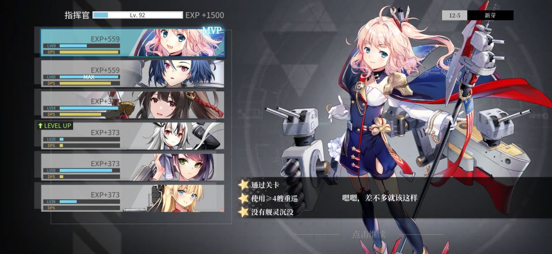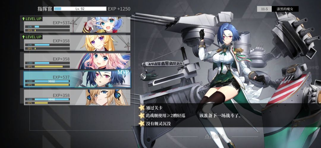 主线困难第11章,查看一下要求是:出战舰使用≥2艘轻巡,我选取的阵容如下: