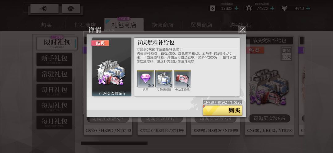 新建号以来的第二个大型捞船活动,今天10点终于要结束了。上午趁还有时间先氪最后一个98元的燃料补给包Ⅲ,继续挂到维护,不过运气不好没出货。