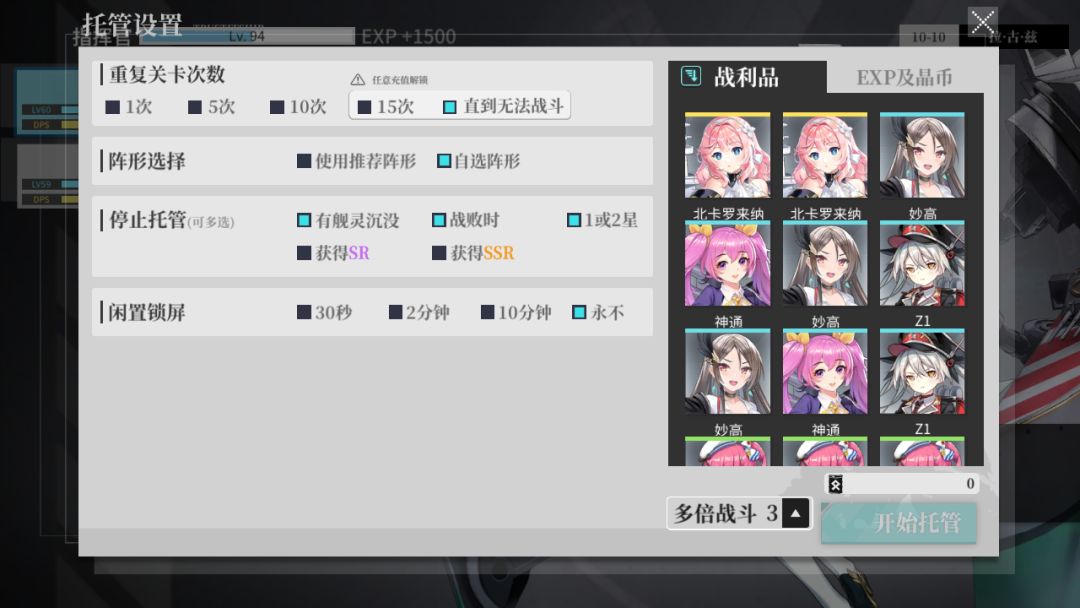 先暂停挂主线10-10捞战利品,剩下的油全部挂防卫战第三波。