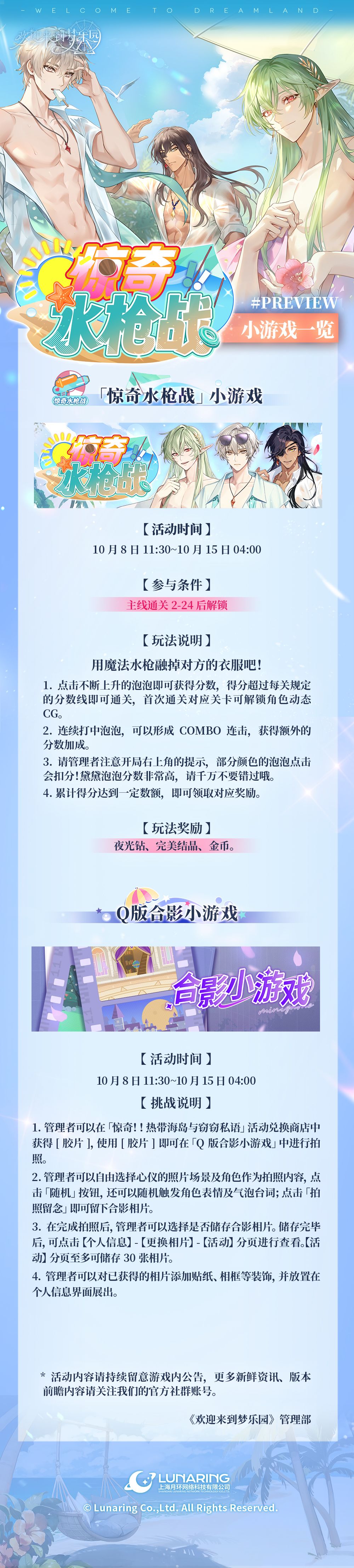 「惊奇!!热带海岛与窃窃私语」复刻活动将于10月8日开启,点击下方长图,即可查看详情一览↓↓↓