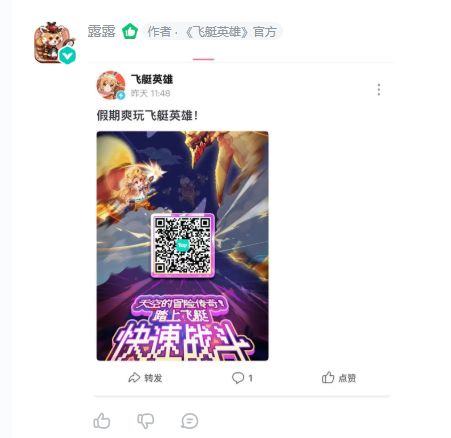 1、关注《飞艇英雄》游戏+论坛,然后分享二维码图片至其他社媒平台(微信朋友圈/微信群/QQ空间/Q群(除飞艇英雄官方群)/微博/小红书/抖音/B站等)