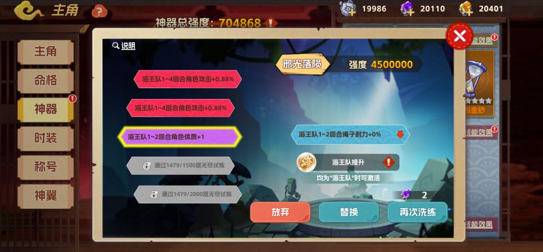1、全新玩法——神器洗练技能!