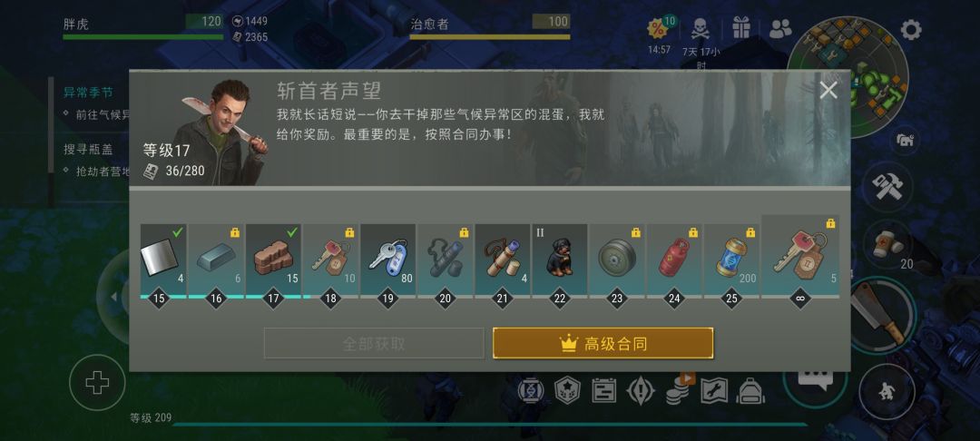 每日3次,持续7天(注意该活动刷新时间为24h,并非每天早8点刷新,且该活动购买高级手册需要从活动第一天就购买,后期购买少做任务影响奖励),使用对应武器击杀怪可以拿积分(地图里的特殊怪进出地图不刷新,一但使用非推荐武器攻击,本轮任务的额外钥匙就没了),不能带狗,箱子奖励也已重做更新,不推荐花费金币购买次数。奖励最好的就是高级箱子里的基因,但过于看运气。购买高级手册(50vip点数)不解锁右边的高级钥匙以及声望里的付费奖励,需要购买高级手册+(100vip点数)才可解锁任务右侧的高级钥匙和声望里的付费。(声望进度不保留,每期重置)