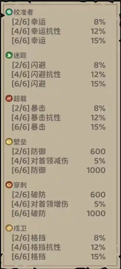 ③再后面,等攻击目标频繁出现“闪避”时,6暴击常驻,剩下6件换成4闪避,拿命中(即闪避抗性),最后2件,可以上2格挡/2闪避。