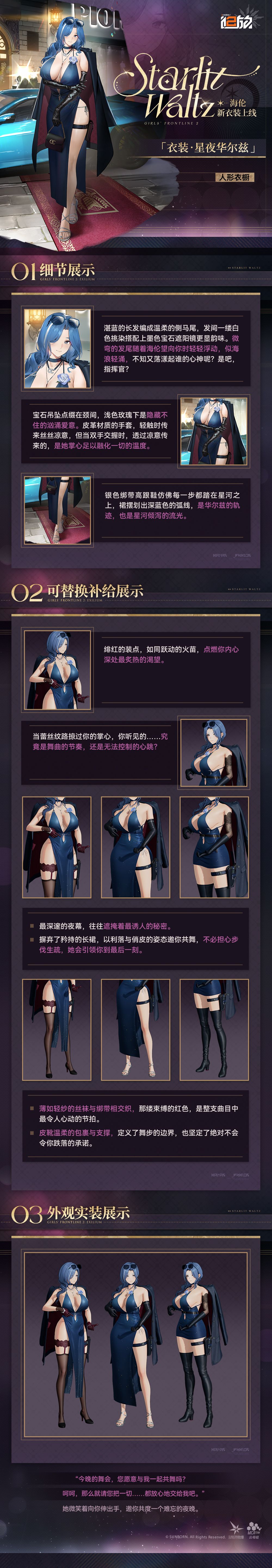 海伦部件礼包部件礼包<魅影礼盒·星夜华尔兹><魅影衣匣·星光圆舞曲>9月30日维护后~10月21日维护前 期间限时折扣上架。一套为舞会精心准备的晚礼服。深蓝色的裙摆如浩瀚的夜空,缀满着点点星光,飘逸的设计令每一次旋转都如银河般眩目。