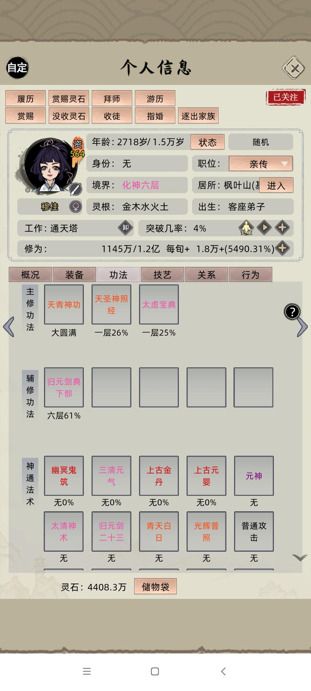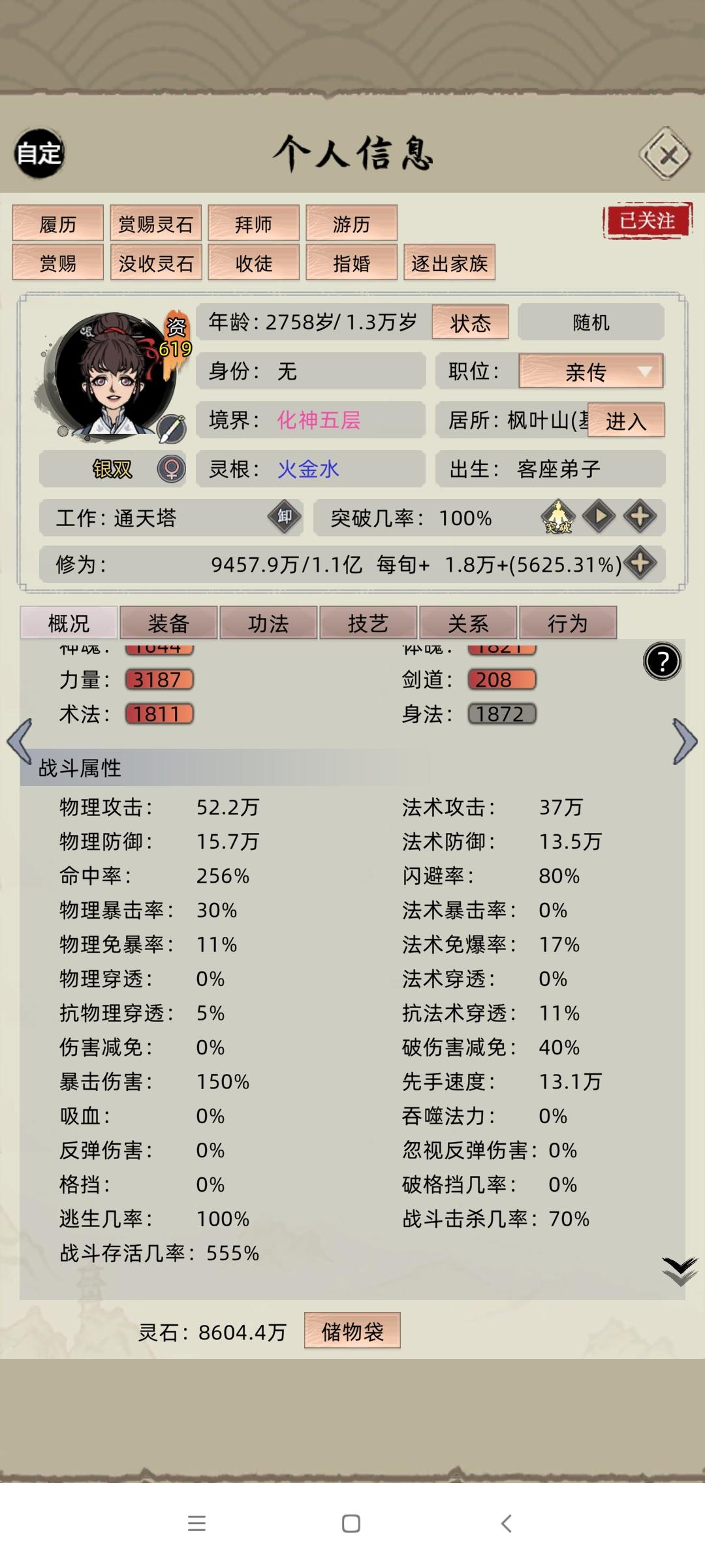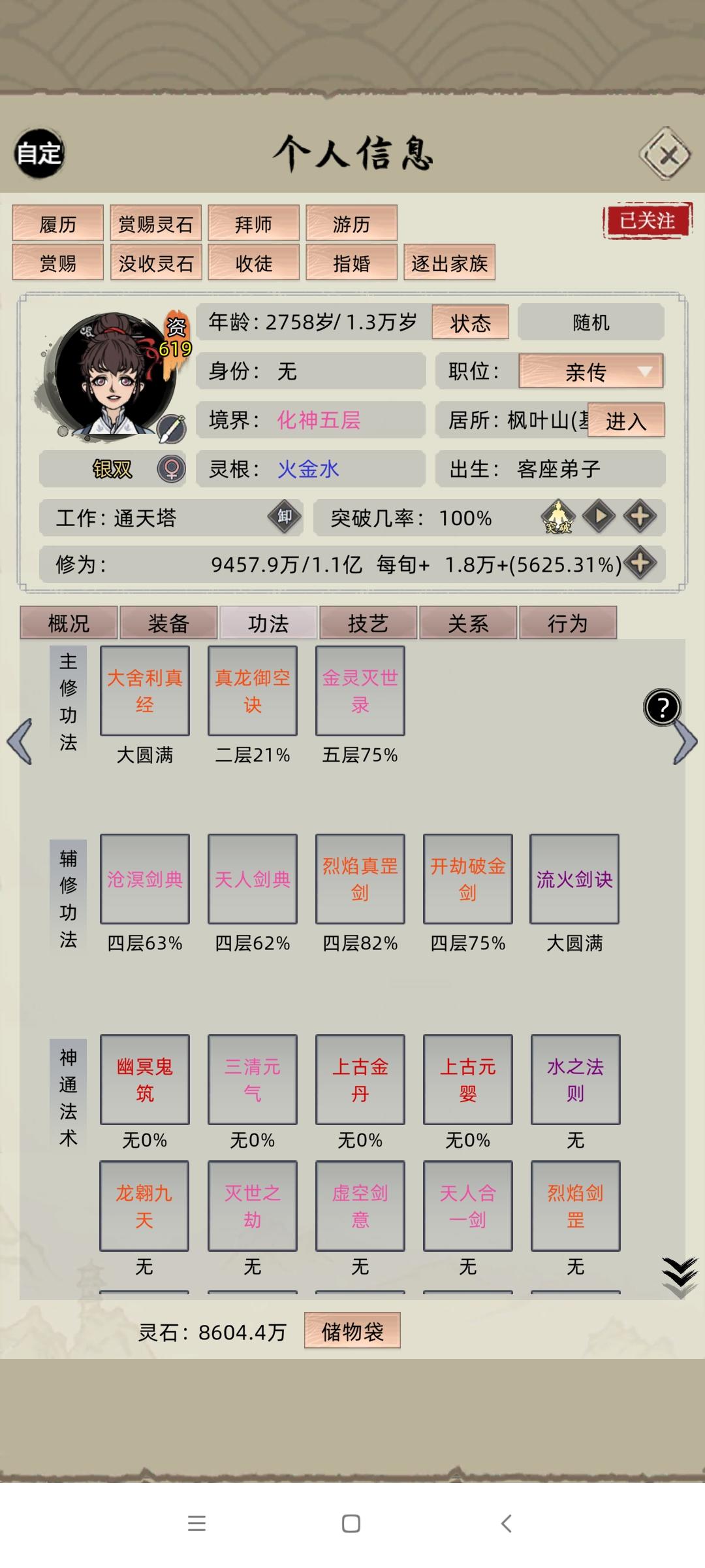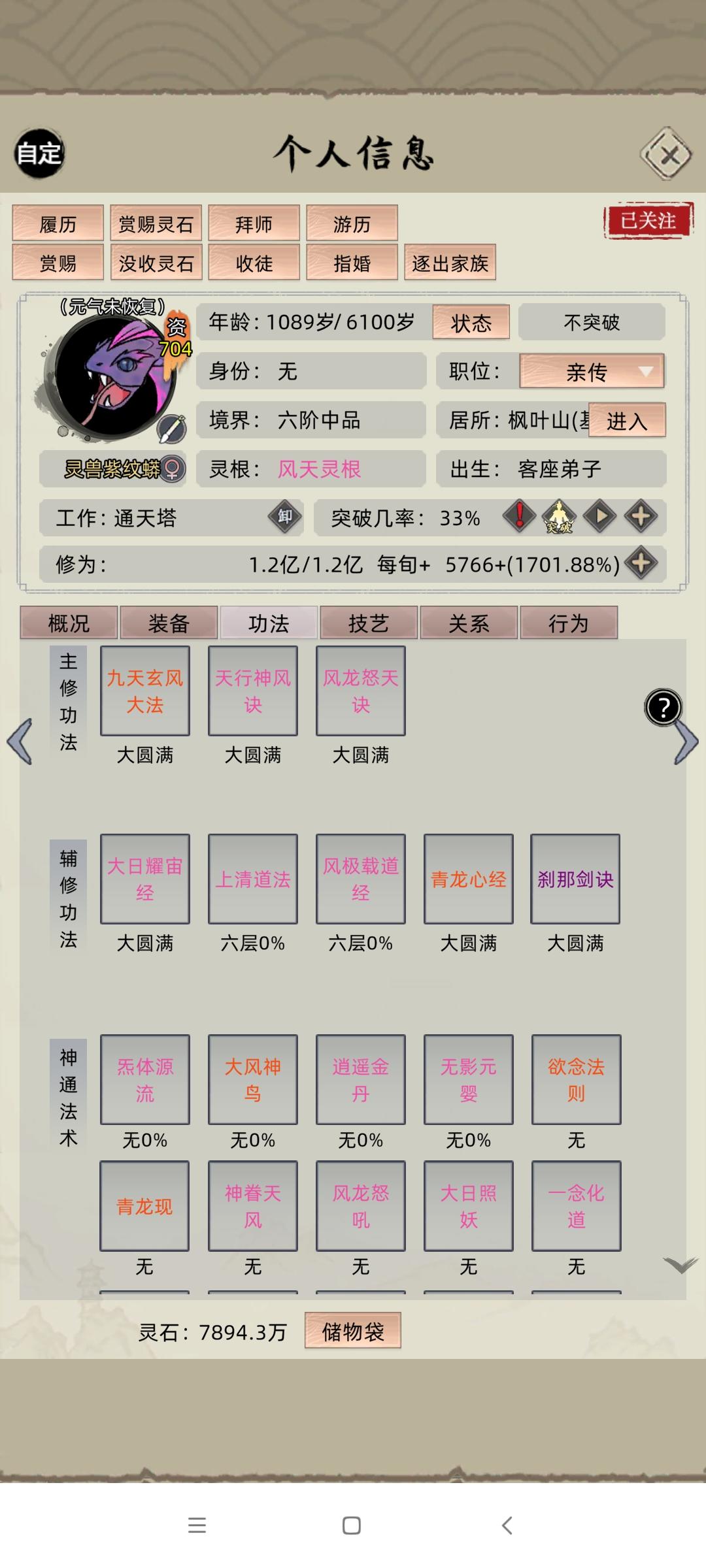 如果不玩灵兽也可以使用小人,一样可行,图中每个功法都加命中,修炼圆满后也是一样的