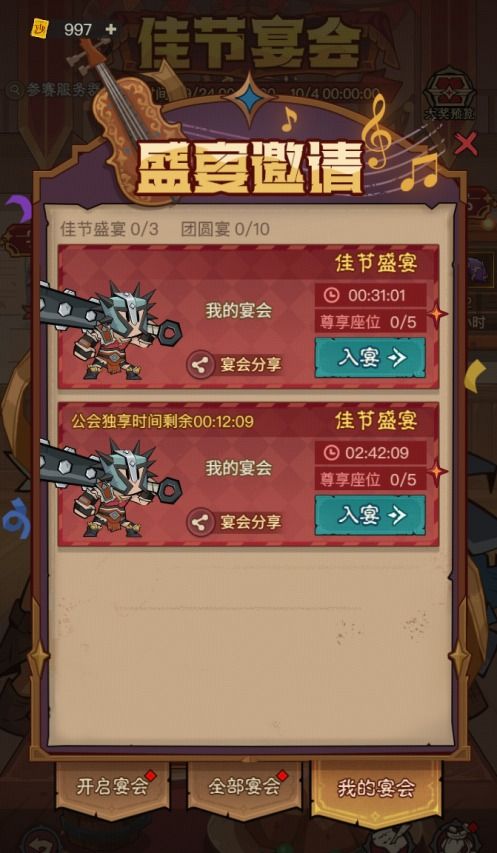 6、消耗特殊的入宴券可以入座其他勇士的宴会,入座后将立即获得入座奖励。