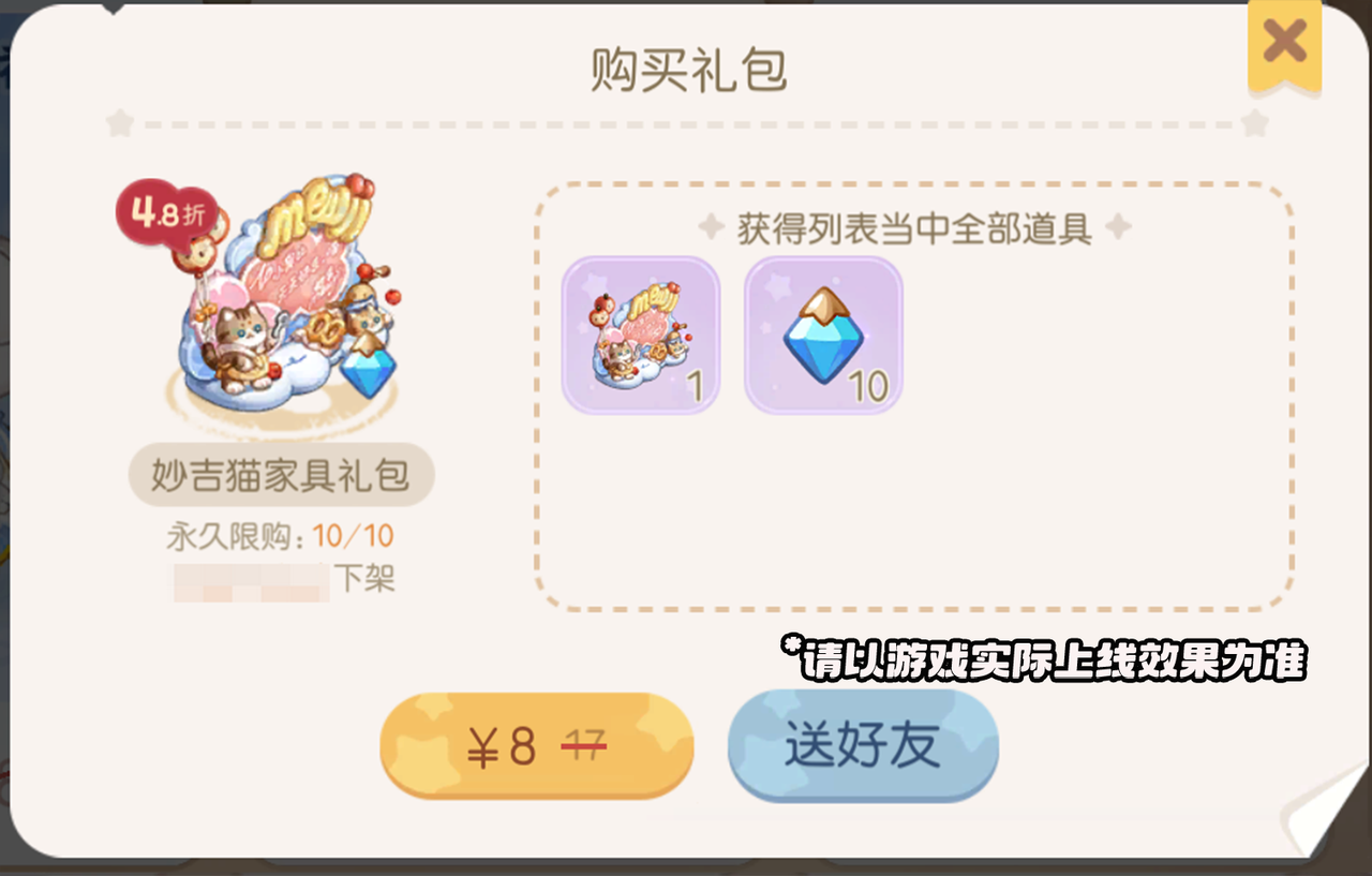 活动介绍:「妙吉猫家具礼包」限时上架,购买可获得「卷卷美味背景板」家具和「晶钻」奖励,喜欢的小奥比们快快行动吧!