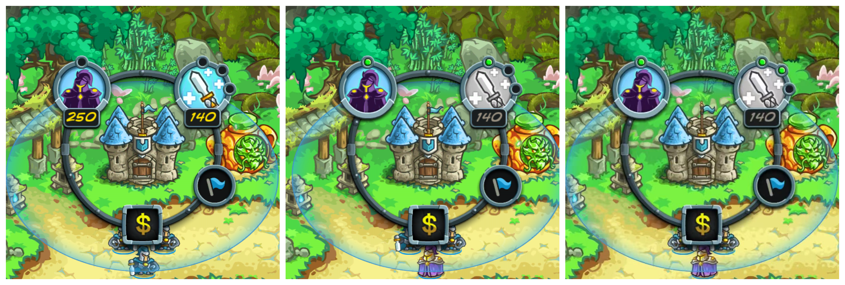 熊猫三人组拥有两种形态,可通过点击塔位选项“走为上”自由切换。他们既可作为兵营阻挡地面敌人,也能转为防御塔或箭塔形态进行远程输出,甚至在防御塔状态下还能攻击空中目标!