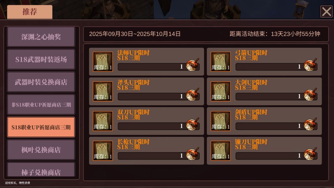 获得的活动道具可以在「资源兑换商店」中兑换职业UP祈愿开启凭证、自选精炼符文&灵光符文、闪光粉尘和多种养成资源。