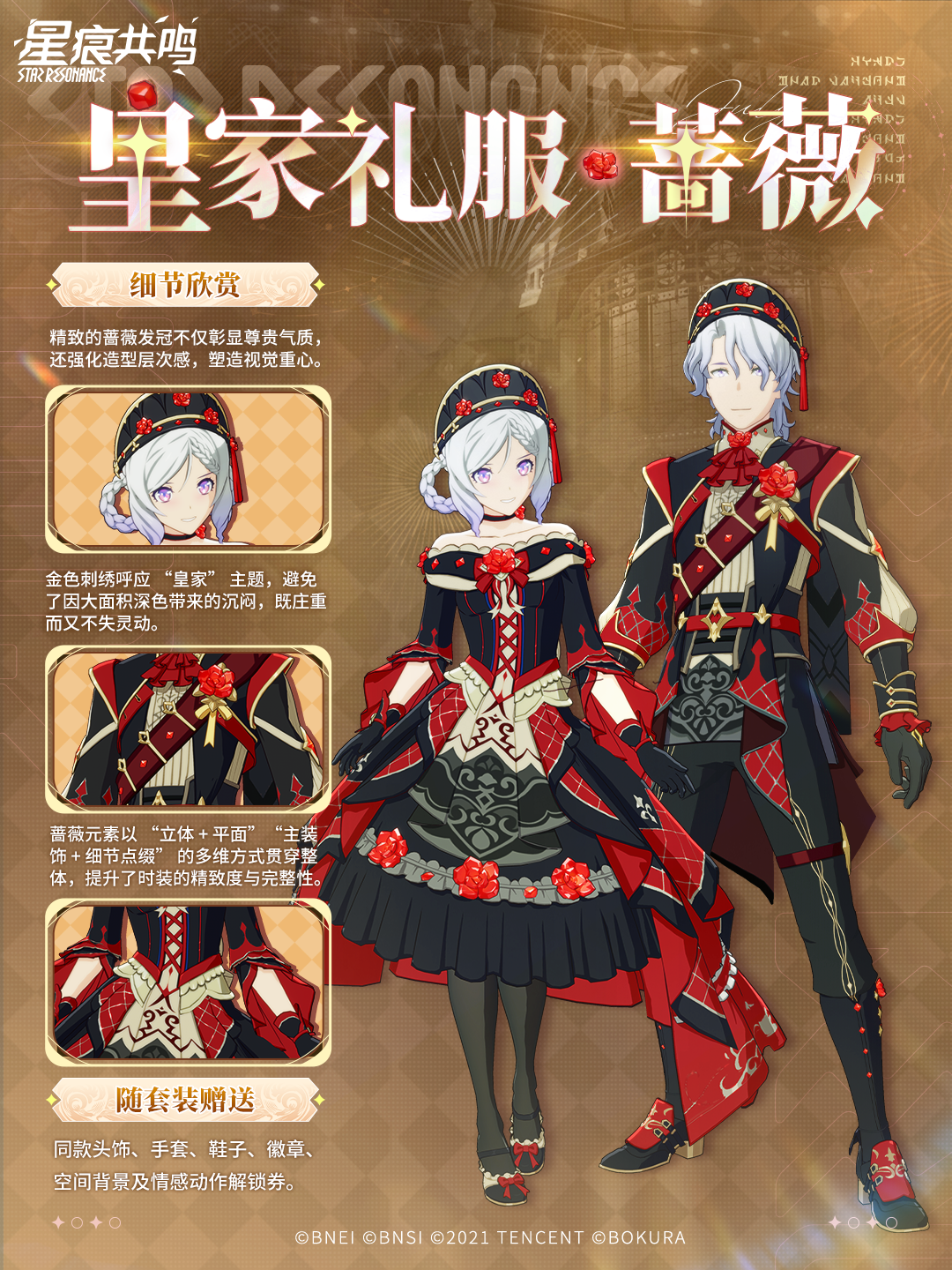 「皇家礼服・蔷薇」以其标志性的红黑配色,为冒险者赋予古典的高贵气韵与蔷薇的夺目美丽。从不张扬,却自成焦点。